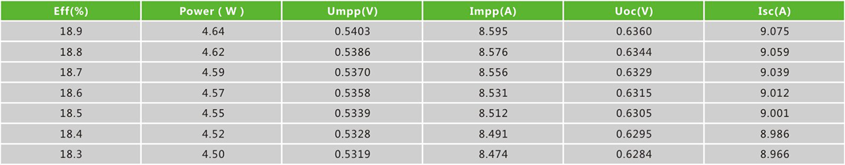 2、Front Busbar Width:0.7±0.1mm Fingers:120
